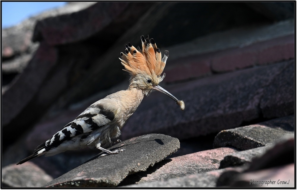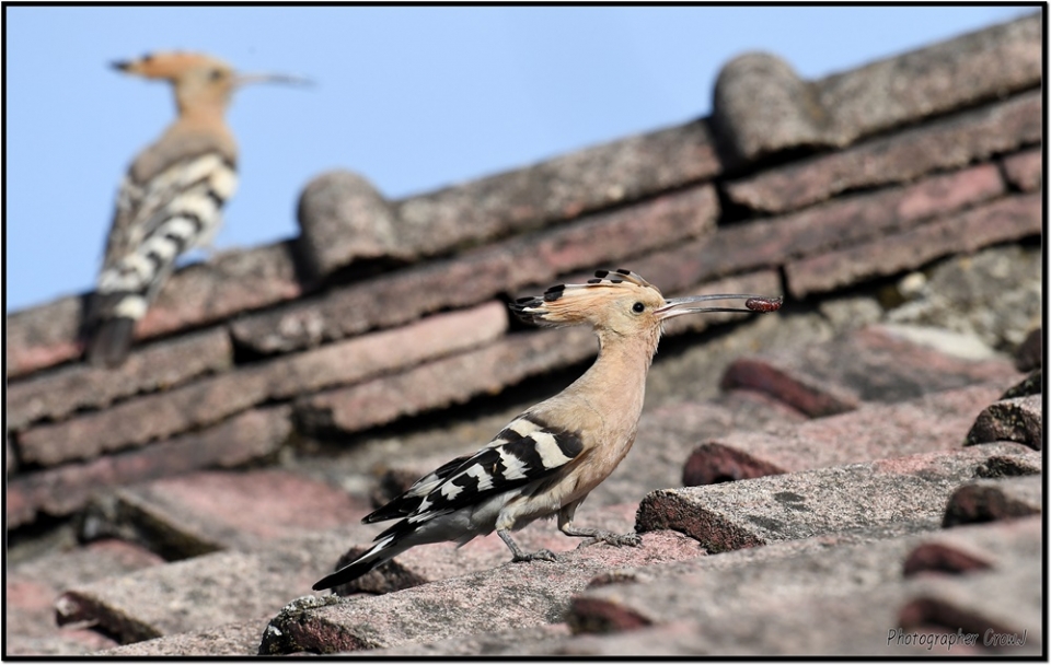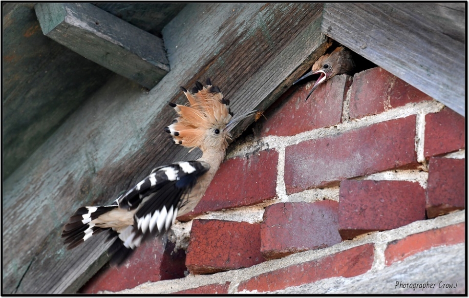 색바랜 빨간 기와집 용마루 구멍에 살고 있는 후투티가 바쁘기 시작했다. 후투티 새끼들이 몇 마리인지는 알 수 없지만, 가끔 둥지 넘어 얼굴 내미는 새끼들을 살펴보면 3마리 이상일 것 같다.