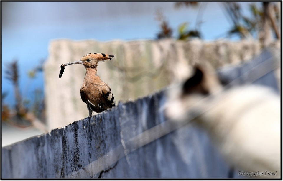 먹이를 물고 지붕을 오가는 후투티를 2시간 동안 촬영하면서 지켜 봤는데, 주변에 고양이들이 많이 돌아다니고 있었다. 어미 새와 함께 마주치기도 하는데, 다행히 아직 둥지를 알지 못하는 것 같다.