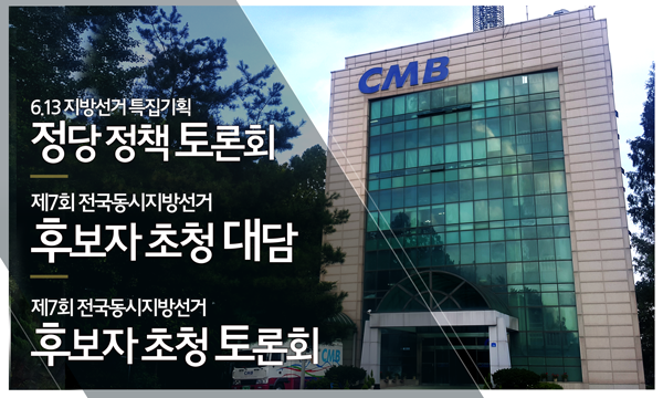 유권자에게 다양하고 면밀한 선거정보를 전달하기 위해 지난 3월부터 메인 뉴스 프로그램인 ‘CMB 뉴스와이드’를 통해 각종 선거 관련 뉴스를 비롯해 각 선거구의 예비후보를 소개하는 ‘6·13 지방선거를 뛰는 사람들’을 방영해 온 CMB는 8일과 9일, 11일 정당 정책토론회(8일 오전 10시 세종, 9일 〃 충남, 11일 오후 3시 대전)를 개최해 각 당의 대전·세종·충남 선거전략 및 현안에 관한 해결 의지를 살펴본다.