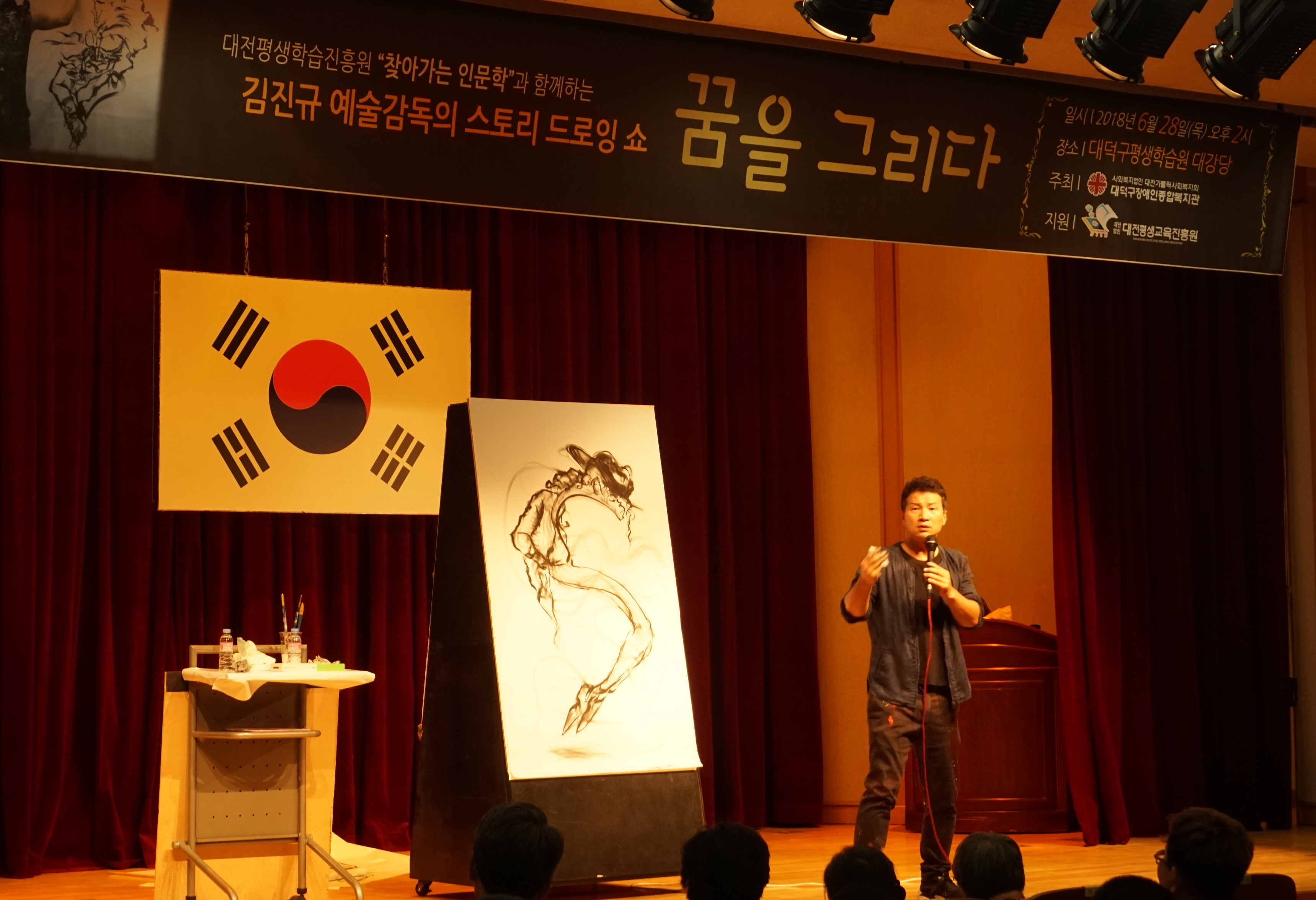 대전 대덕구장애인종합복지관(관장 안광훈)은 지난달 28일 대덕구평생학습원에서 ‘꿈을 그리다’를 주제로 김진규 예술감독의 스토리 드로잉쇼를 개최했다. 이번 공연은 대전평생교육진흥원의 ‘찾아가는 인문학’ 지원사업의 일환으로 마련됐다. 대덕구장애인종합복지관 제공
