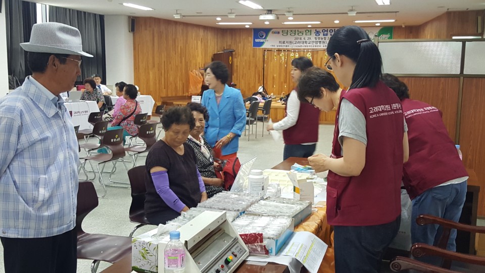 아산시 탕정농협 회의실에서 가진 행복버스에서는 고려대학교안암병원 의료봉사단 20여명이 동참해 200여명의 고령농업인들에게 의료지원과 함께 장수사진, 검안 및 돋보기 지원 등을 했다.