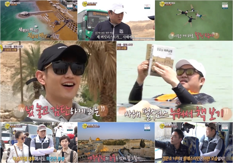 지난 29일 방송된 MBC 탐사 예능 ‘선을 넘는 녀석들’(기획 박현석 / 연출 정윤정 오미경 / 이하 ‘선녀들’) 11회는 요르단 국경을 넘어 이스라엘에 도착한 김구라-이시영-설민석-샤이니 민호가 몸이 떠오르는 기적이 일어나는 사해에서 일생일대의 경험을 하고 3대 종교의 성지인 예루살렘을 찾아 중동 갈등의 역사를 들여다 보는 여정이 펼쳐졌다.