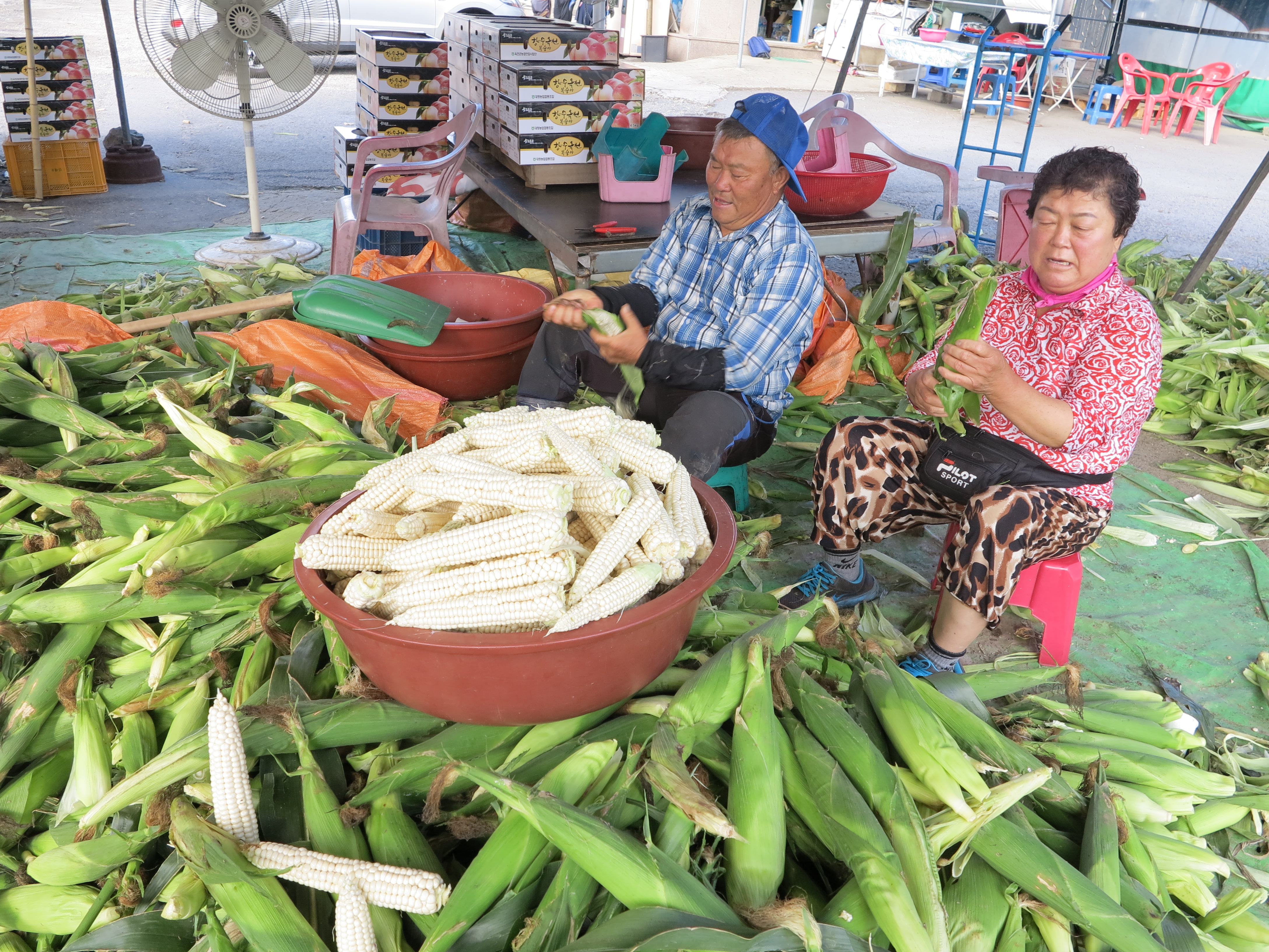 18년째 이곳에서 옥수수 농사를 짓고 있는 김영수(70)·최바다(67) 씨는 요즘 한창 제철을 맞은 옥수수 수확으로 분주하다. 매일 새벽 신선한 옥수수를 수확해 그 자리에서 바로 껍질을 벗겨 옥수수를 판매한다.