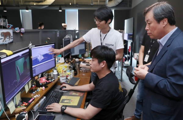 도종환 문화체육관광부 장관이 17일 ㈜덱스터스튜디오(대표 김용화)를 방문해 노동시간 단축 현장을 점검하고 영화산업의 미래를 논의했다.