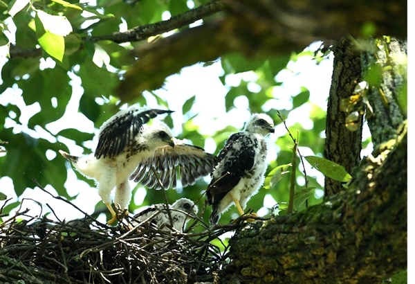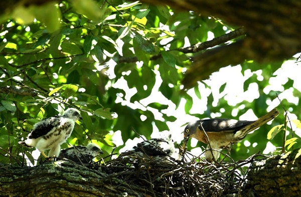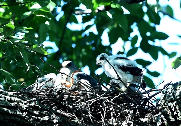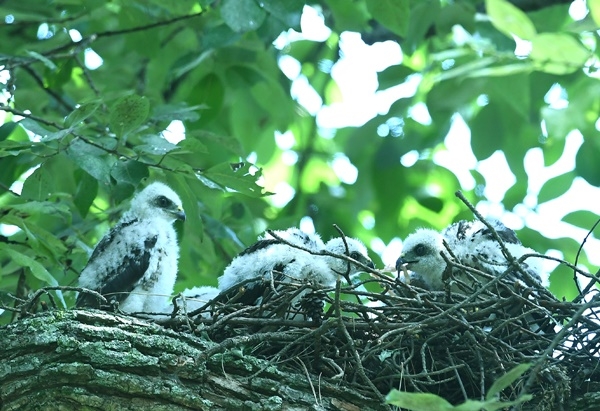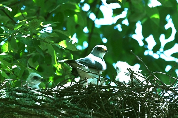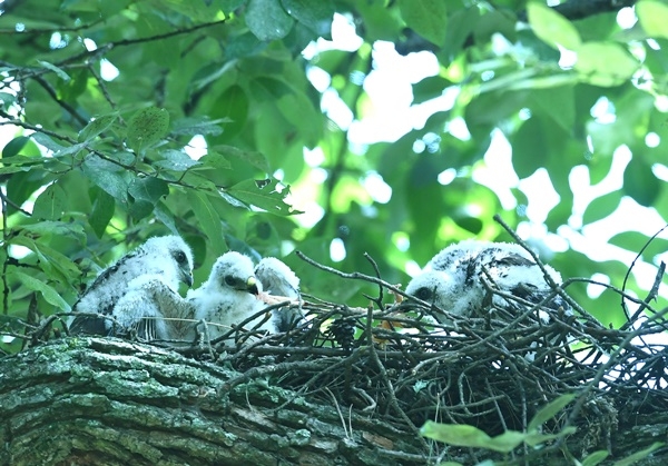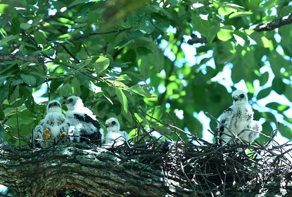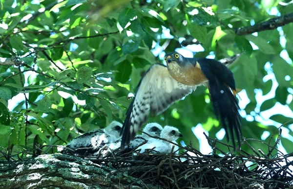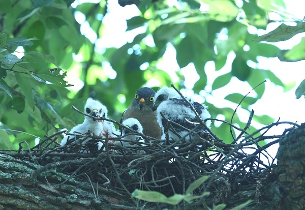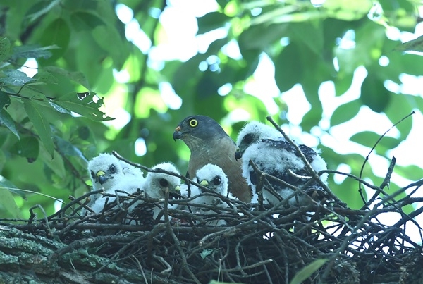 보문산 주위를 탐조하던 중에 둥지를 발견하여 새끼 네마리를 키우고 있는 한쌍의 붉은배새매을 촬영하였다.