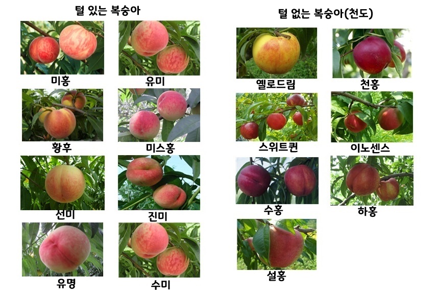 올해까지 털 없는 천도 7품종과 털 있는 복숭아 10품종으로 모두 총 17품종을 육성했다. 품질이 뛰어나며 추위에도 잘 견디고, 노동력은 덜 드는 품종을 목표로 연구 개발해 온 결과다.