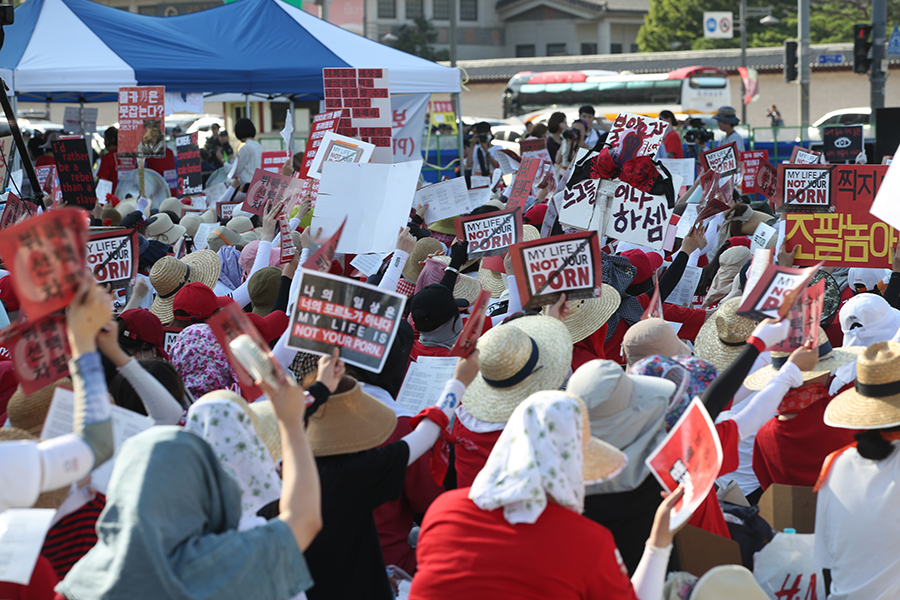 그리고 마침내 4일 오후 4시부터 시작된 집회에는 주최 측 추산 7만 명의 여성들이 피켓을 들고 참석했다.