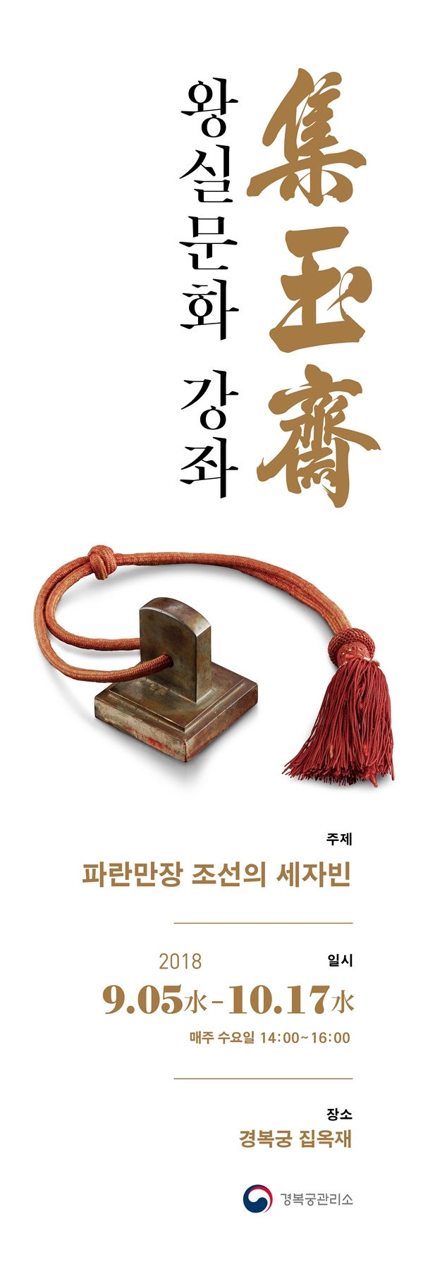 문화재청 경복궁관리소는 오는 9월 5일부터 10월 17일까지 매주 수요일(오후 2~4시) 경복궁 집옥재(集玉齋)에서 '파란만장 조선의 세자빈'이란 주제로 하반기 ‘집옥재 왕실문화강좌’를 개최한다.