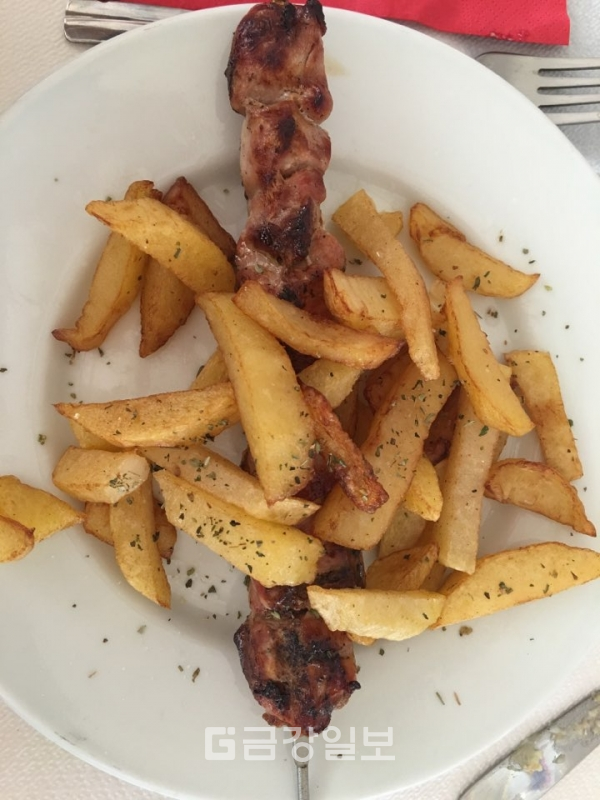 그리스는 터키에 긴 시간 식민 지배를 받았다. 지금도 두 나라는 으르렁거린다. 우리와 일본 사이에 비하면 한일관계는 친한 편이었다. 그렇게 이를 갈아도 터키 요리와 그리스 요리는 많이 닮았다. 그래도 결코 인정하지 않는 것은 그리스의 마지막 자존심이다. 밀빵과 야채 그리고 고기 한 꼬치면 행복했던 그리스가 막 보고 싶다.