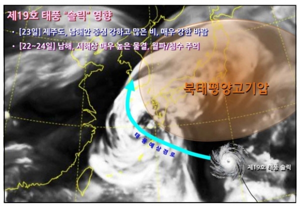 특히 서해상과 남해상에는 5~8m의 매우 높은 파고가 일겠으니 해상 안전사고 등에 대한 철저한 대비와 함께 앞으로 발표되는 기상정보을 확인해야 한다.