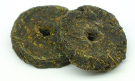 찻잎을 틀에 박아서 만든 덩어리(떡차) 형태로, 발효 과정에서 이끼처럼 푸르게 변한다 하여 이름 지어졌으며, 동전과 비슷해 ‘돈차’라고도 불린다.