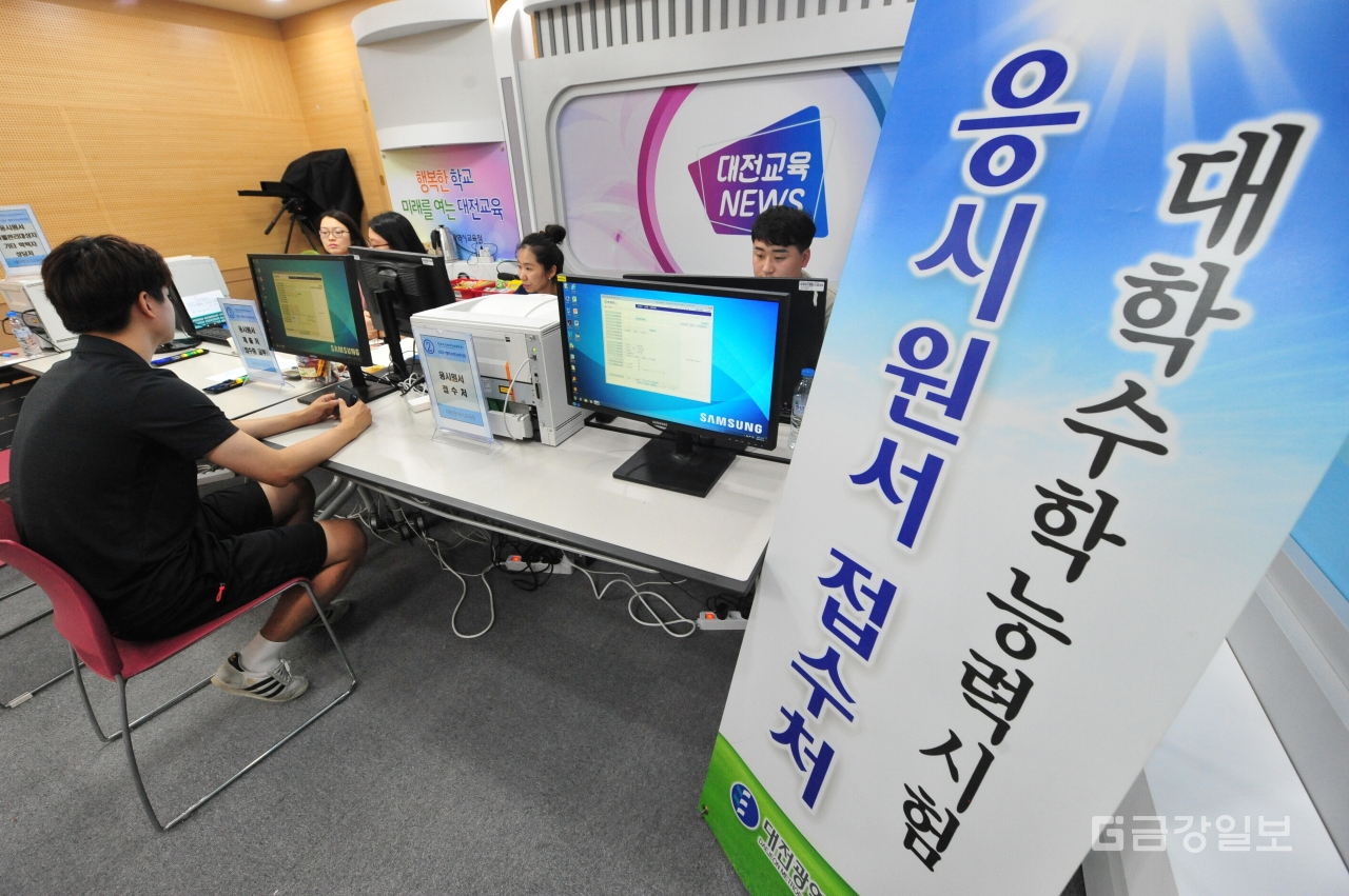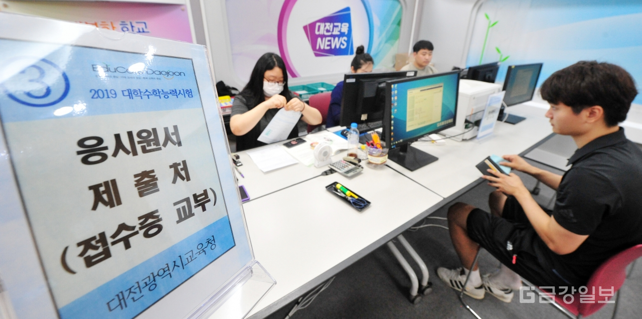 2019학년도 대학수학능력시험 원서접수 첫날인 23일 대전시교육청에서 응시생들이 수능 원서접수를 하고 있다. 수능원접수는 9월 7일까지다. 전우용 기자 yongdsc@ggilbo.com