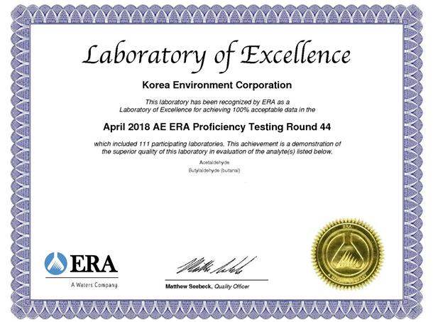 국제숙련도 평가는 국제 표준화기구(ISO)와 국제 실험실 인증협력기구(ILAC)가 인정한 국제숙련도 운영기관인 ERA가 지정악취물질 2종(아세트알데하이드, 뷰티르알데하이드)을 대상으로 진행, 악취관리처는 2016년에 이어 3년 연속 전 항목 ‘만족’ 판정과 인증을 받았다.