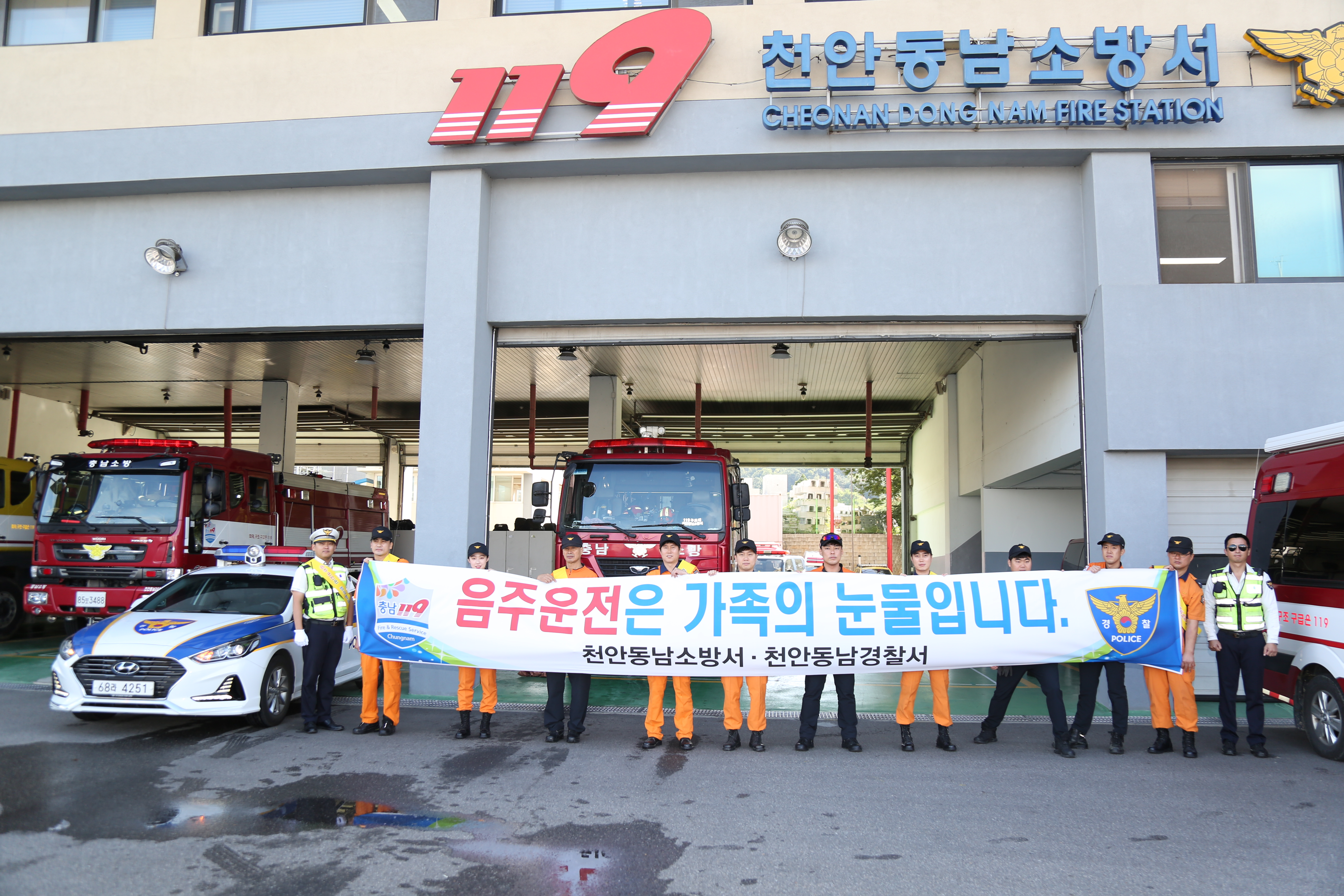 천안동남소방서는 11일 천안동남소방서에서 전 직원을 대상으로 음주운전 근절을 위한 GO 챌린지를 천안동남경찰서와 합동으로 실시했다.