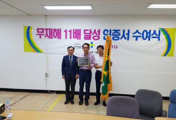 충남지사 김덕일 지사장은 “제조업에서 보기 드문 무재해 11배수를 달성하는 만13년 동안 재해가 한건도 없었다는 점에 높은 점수를 드리고 싶다”며 “무재해 달성은 안전문화에 대한 경영진의 의지와 근로자들의 적극적인 참여가 함께 이루어질 때 가능하다”며 “앞으로도 무재해가 지속적으로 달성될 수 있도록 사업장 안전문화 정착에 노·사가 함께 노력해 달라”고 당부했다.