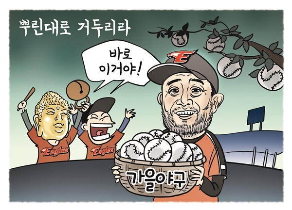 ‘Break The Frame(판을 흔들어라)’. 한화의 올 시즌 캐치프레이즈가 현실이 됐다. 한화는 판을 제대로 흔들고 있다. 이제 한화는 가을 DNA를 장착해야 한다. 한화에서 포스트시즌을 경험한 선수는 김태균과 송창식, 안영명 등 3명뿐이다. 물론 이용규와 정근우, 정우람, 송은범, 권혁 등 KIA와 SK, 삼성에서 우승한 경험이 있지만 오래전의 일이다. 오늘도 한화는 리그의 중심에 서 있다.(기사 전문보기)
