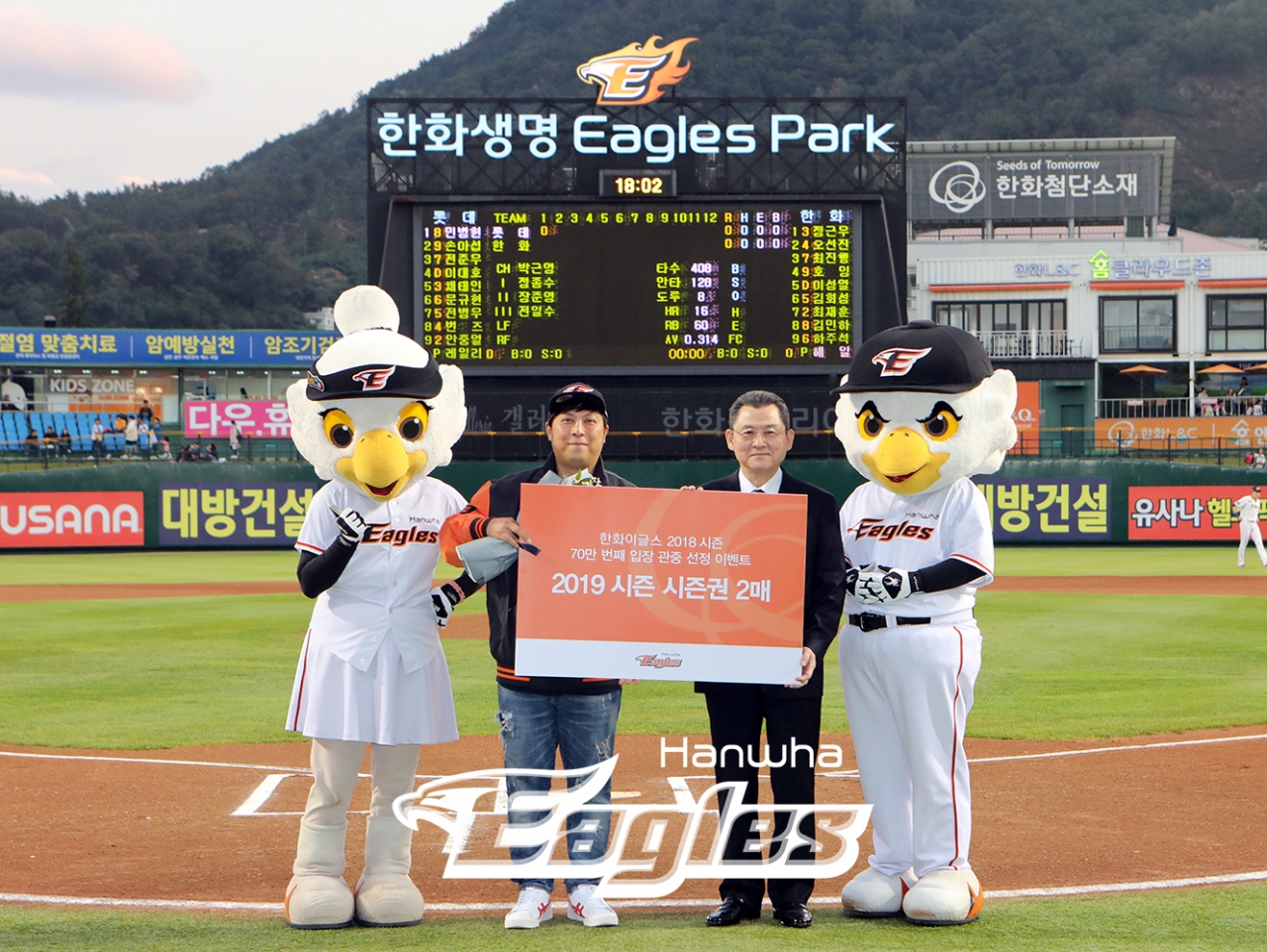 대전 한화생명이글스파크 70만 관중 달성 기념 시즌권 전달식이 4일 열렸다.