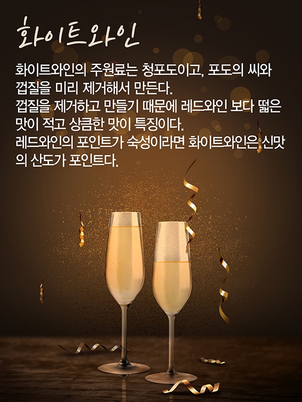 레드와인의 포인트가 숙성이라면 화이트와인은 신맛의 산도가 포인트다.