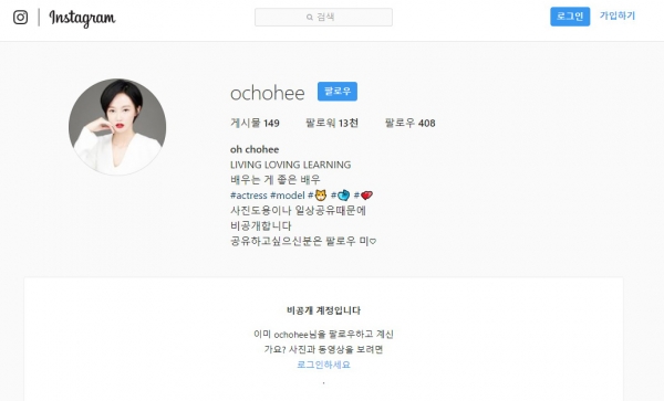 이에 오초희는 해당 글을 삭제한 뒤 "사진도용이나 일상 공유 때문에 비공개합니다"라고 프로필 화면을 메시지를 남긴 채 해당 인스타그램을 비공개로 전환했다.