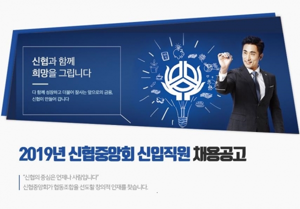 신협중앙회 박영현 인력개발팀장은 “2019년 신협중앙회 인재 선발의 원칙은 스펙 중심이 아닌 인공지능(AI), 핀테크, 블록체인으로 대표되는 4차 산업혁명 시대의 금융 혁신을 선도하기 위해 유연한 사고와 창의성을 갖춘 우수한 인재를 확보하는 것”이라며 “나아가 서민 금융기관으로서 사회적 가치를 추구하는 신협의 설립목적에 부합할 수 있도록 도덕성과 인성을 함께 갖춘 인재 선발에 중점을 둘 것”이라고 말했다.