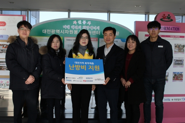 한국조폐공사, ㈜한국가스기술공사, 한국수자원공사, 한국철도공사, 한국철도시설공단, 한전원자력연료㈜ 등 6개 공공기관은 27일 대전시청에서 취약계층 난방비 지원을 위해 십시일반으로 모은 600만 원을 대전시자원봉사지원센터에 전달했다.