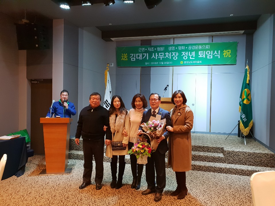 충남도새마을회 김대기 사무처장 정년퇴임식이 지난 26일 천안시 오엔시티호텔에서 개최됐다.
