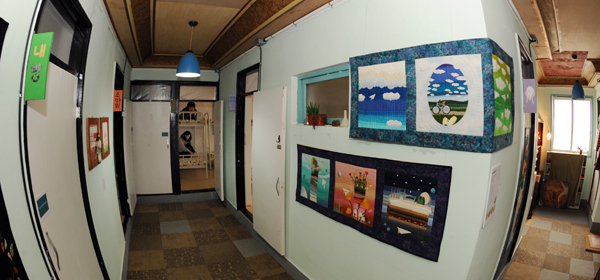 벽면에는 퀼트작품이 걸려 있다.