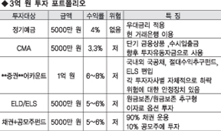 일단 3억 원의 목돈에 대한 투자에 있어 최 씨의 목표 수익률을 다소 낮출 것을 권한다. 왜냐하면 원금에 손실이 가지 않게 하기 위해선 수익률을 높일 수 있는 투자 상품에 대한 선택의 폭이 좁고 대부분을 안정적인 자산으로 운용할 수밖에 없기 때문에 투자수익률을 ‘시중금리+α’ 정도로 해 6~8%선에서 맞추는 것이 적합하다.