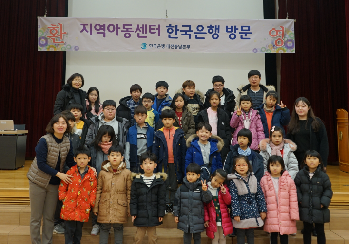 한국은행 대전충남본부가 12일 지역본부에서 ‘금융경제교육 및 화폐박물관 견학 행사’를 실시한 가운데 초청된 충남 논산 꿈나무지역아동센터 아동 31명이 기념촬영을 하고 있다. 참가 아동들은 한국은행 소개와 경제교육 강의를 듣고 한국조폐공사 화폐박물관을 견학했다. 한국은행 대전충남본부 제공