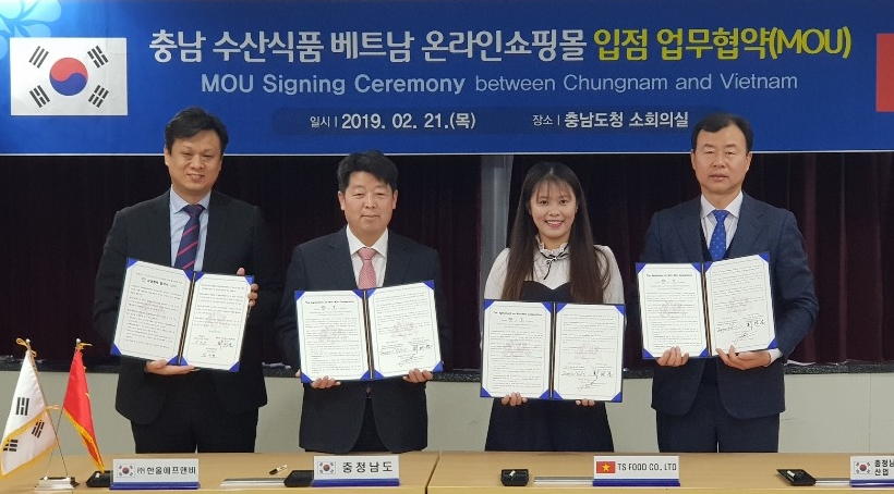 충남도는 21일 도청 소회의실에서 베트남 식품전문기업 ‘TS FOOD’와 도내 수산식품 베트남 온라인몰 입점을 위한 업무협약(MOU)을 체결했다. 협약에 따라 양측은 도내 수산식품기업 10곳을 선정해 베트남 온라인몰에 입점할 수 있도록 지원하기로 했다. 충남도 제공