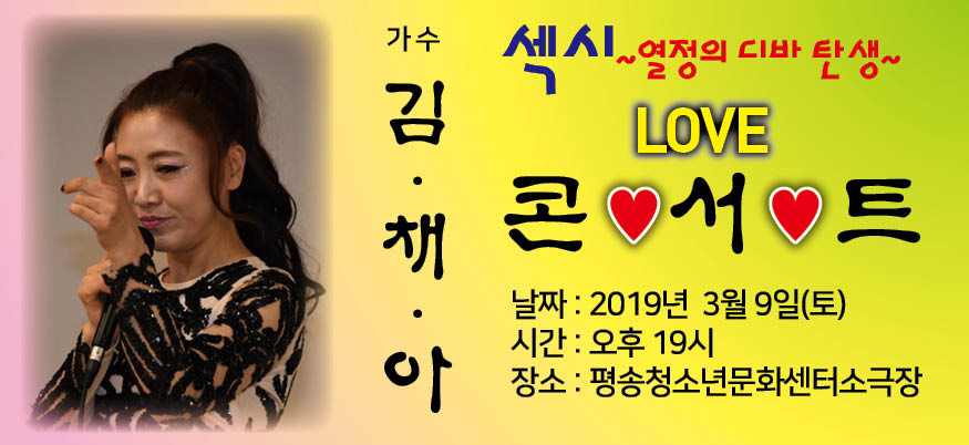열정의 디바 가수 김채아가 오는 9일 오후 7시 대전 평송청소년문화센터 소극장에서 신곡을 발표하는 ‘LOVE 콘서트’ 무대에 선다.