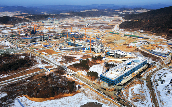 연말 기관들의 입주를 앞두고 청사 건물의 건축공사도 활발하게 진행되고 있다.