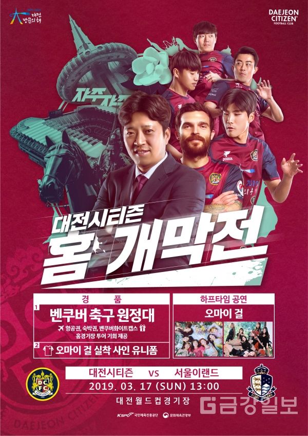 한편 이번 경기에는 2019시즌 홈 개막전을 맞아 홈경기 관람객들을 위한 다양한 이벤트와 경품이 준비돼 있다. 하프타임에는 걸그룹 오마이 걸의 공연이 펼쳐지며 벤쿠버 축구 여행권(항공권, 숙박권, 벤쿠버화이트캡스 홈경기장 투어 기회 제공), 실착 사인 유니폼 등 다양한 경품이 제공된다.