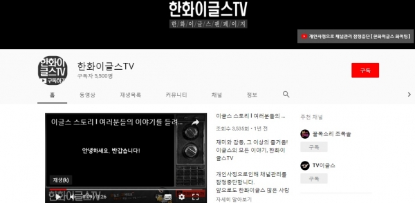 시범경기 중계가 되지 않으면서 각 구단들은 자체 중계에 나섰다. 한화이글스는 유튜브 채널 ‘이글스TV’를 통해 자체 중계했다. 카메라 단 1대와 리포터 1명이 전부였고, 고퀄리티 화질도 아니었지만 한화팬들은 자체 야구 중계를 통해 갈증을 풀었다. 이글스TV 중계는 문가혜 한화 구단 리포터가 맡았다.