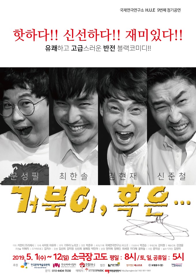 예술단체를 후원하는 기업 ㈜굿컴퍼니와 한국메세나협회의 지원을 받아 마련된 국제연극연구소H.U.E(휴) 9회 정기공연 연극 ‘거북이, 혹은...’이 내달 1일부터 12일까지 중구 대흥동 소극장 ‘고도’ 무대에 오른다.