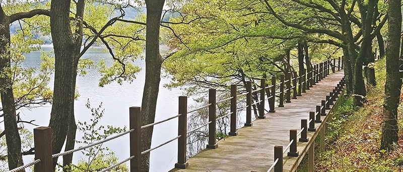 약 2㎞쯤 걸었을까. 대청호의 물기를 머금은 시원한 바람이 불어오지만 제법 따스한 햇볕과 오르막과 내리막을 연속하는 길을 걸은 탓인지 땀이 흐르기 시작할 무렵, 입가에 절로 웃음이 걸리는 풍경이 펼쳐진다. 호수와 마주한 비교적 넓은 터에 나무 한 그루 서 있고 그 아래 벤치가 놓여있다. 벤치에 잠시 앉자 눈앞에 펼쳐진 대청호 장관은 그간의 피로를 잊게 만든다. 마냥 앉아 풍류를 즐기고 싶은 마음이 샘솟지만 앞으로의 기대감이 더 큰 탓에 자연스레 다음 장소를 이동을 시작한다.