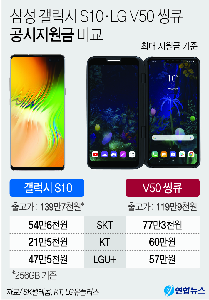 [뉴스 그래픽] LG V50 씽큐-삼성 갤럭시10 공시지원금 비교해보니