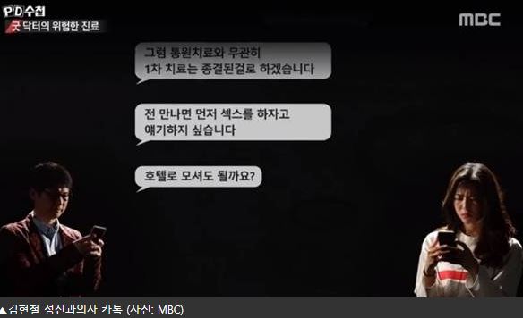 이날 방송에서 한 피해 여성은 "눈을 떠보니 김현철 정신과의사가 제 옆에 누워 저를 안고 몸을 만지고 있더라"라고 말했다.
