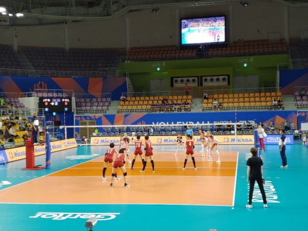 18일 오후 5시에 열리는 대한민국(세계랭킹 9위) 대 도미니카공화국(10위)이 맞붙는 가운데 오후 1시 경 열린 폴란드(26위) 대 일본(6위) 경기의 2세트가 끝났다.