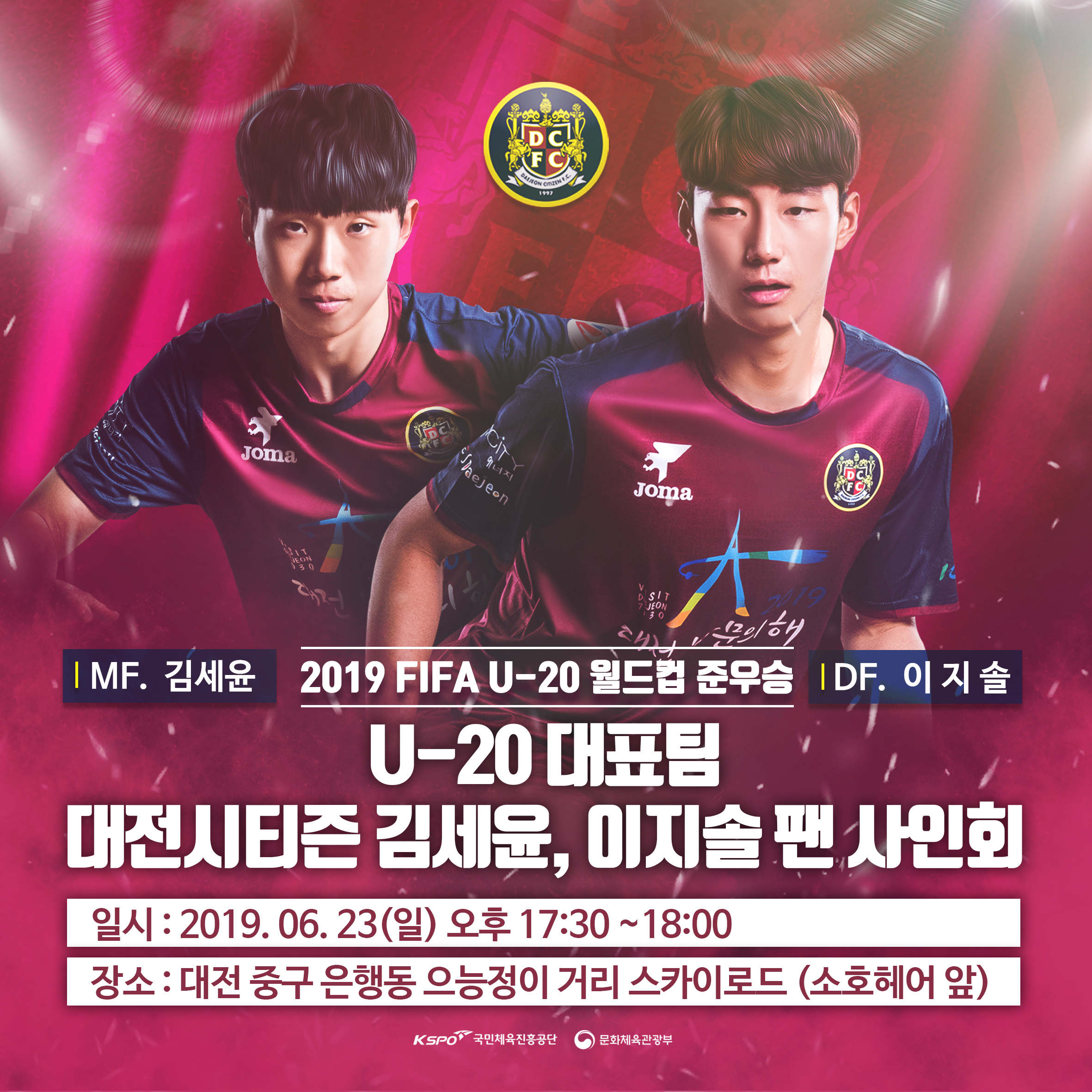 FIFA(국제축구연맹) U-20 월드컵 준우승을 일군 김세윤, 이지솔이 고향 대전에서 팬들과 만난다.