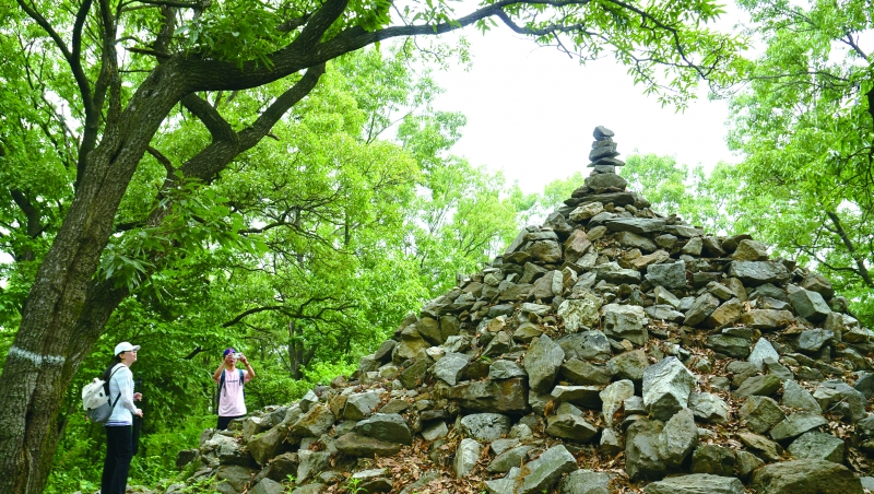 동구 용운동과 비룡동을 잇는 임도를 지나 계속 북쪽으로 길을 잡는다. 햇살을 머금은 개망초 군락이 화사한 초여름의 운치를 살린다. 개망초는 햇빛을 받으면 잎을 열고 해가 지면 잎을 닫는데 활짝 핀 모습이 계란 프라이 같다고 해서 흔히 ‘계란꽃’으로 불린다. 개망초 꽃밭을 따라 산행을 즐기다 보면 기괴한 바위들과 만나게 된다. 하나 같이 신기하게 서 있어 눈길을 사로잡는다.