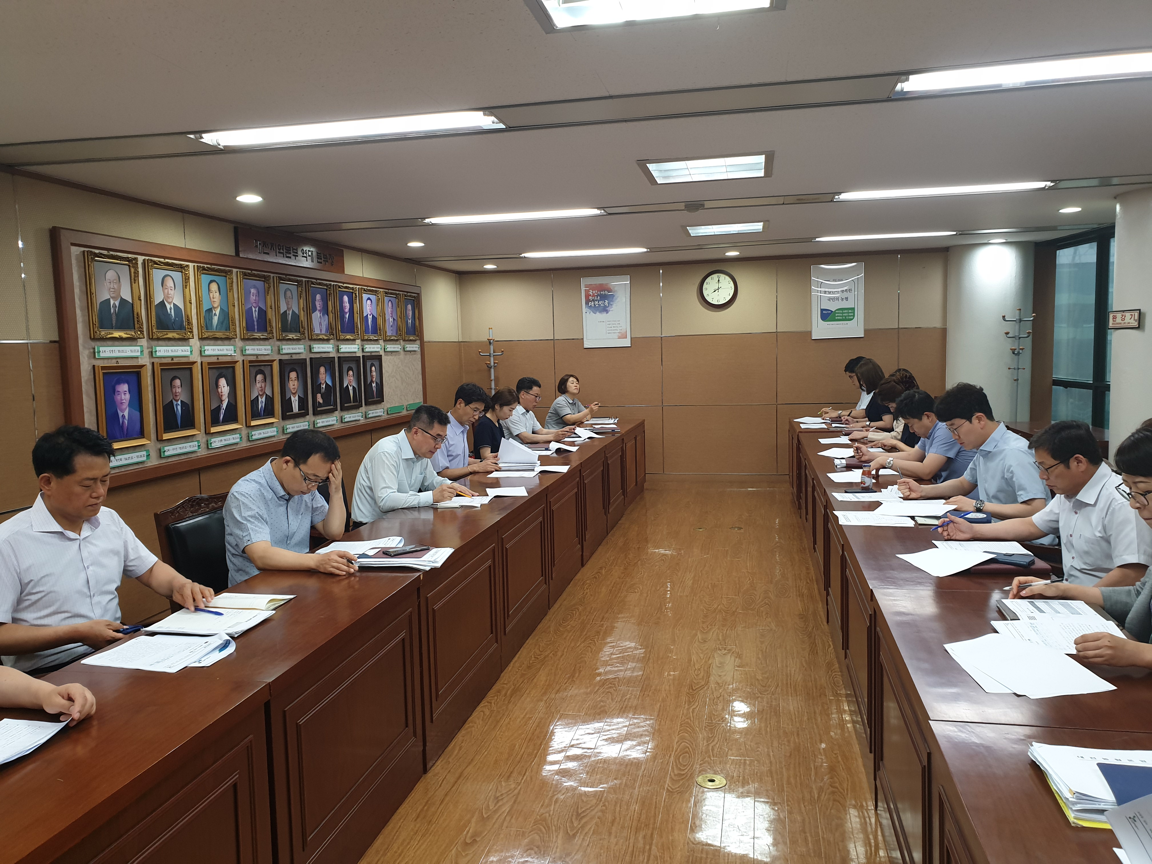 전용석 농협중앙회 대전지역본부장(왼쪽 세 번째)과 모든 임직원이 26일 대전농협에서 ‘2019년 하반기 주요업무 추진계획 보고회’를 갖고 의견을 공유하고 있다. 대전농협은 하반기에 농민신문 보급확대, 청년조합원 가입 확대, 농가소득 향상 등을 중점 추진할 계획이다. 농협 대전영업본부 제공