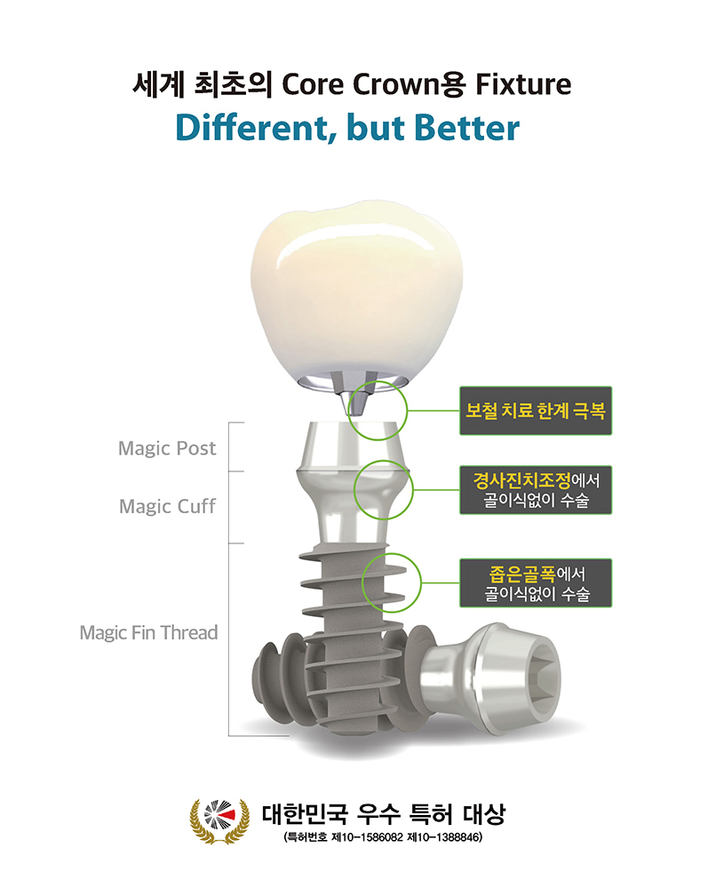 “저희는 치료에 대한 콘셉트가 다릅니다. 임플란트는 아주 쉽게 얘기하면 절개해서 꿰매고, 잇몸을 절개해서 벌리기 때문에 손상이 심하고 감염 가능성이 높습니다. 기존의 수술은 뼈를 보고 하지만 저희는 절개가 거의 없이 환자의 잇몸을 보고 수술을 합니다. 논리적인 프로토콜이 들어 있습니다. 이런 방식은 국내에서뿐만 아니라 세계 최초입니다.”
