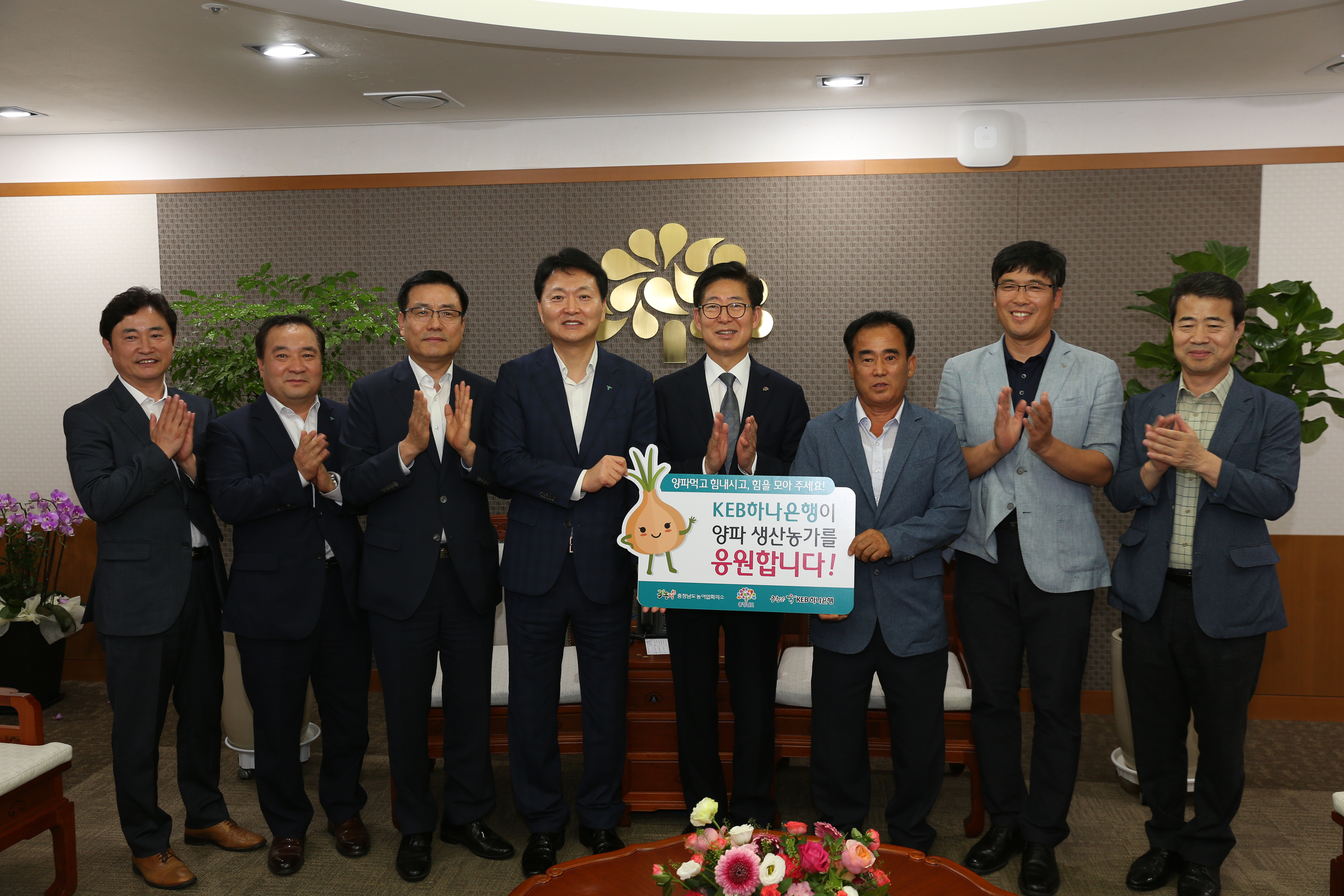 하나은행 충청영업그룹이 18일 충남도청에서 ‘양파구매 전달식’을 갖고 지역 생산 농가 지원에 나섰다.