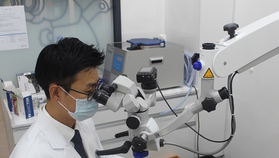 치아재식술은 미세한 잔신경이 모여 있는 뿌리 끝 3mm 부위를 잘라내고 신경관 끝을 밀폐한 뒤 다시 잇몸 안으로 재식한다. 이처럼 발치한 치아가 잇몸 안에서 다시 고정되려면 뿌리의 치근막세포가 살아 있어야 하기 때문에 치아재식술은 모든 과정이 15분 이내에 신속히 마무리돼야 하는 고난도 치료다. 뿌리 끝의 아주 좁은 부위를 다루는 만큼 육안으로는 정확히 식별하기 어려워 미세현미경이 필요해진다.