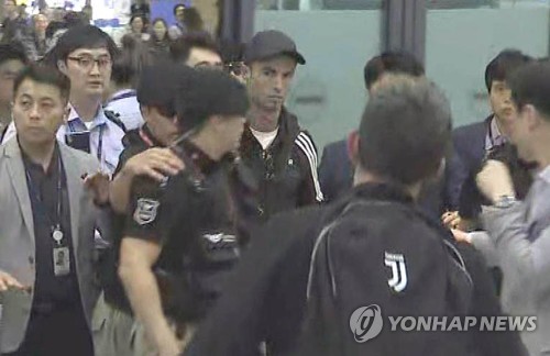 K리그 선발팀과 친선경기를 위해 방한한 유벤투스의 크리스티아누 호날두가 26일 인천국제공항 제1터미널을 통해 입국하고 있다.