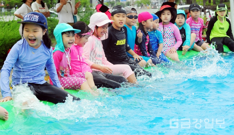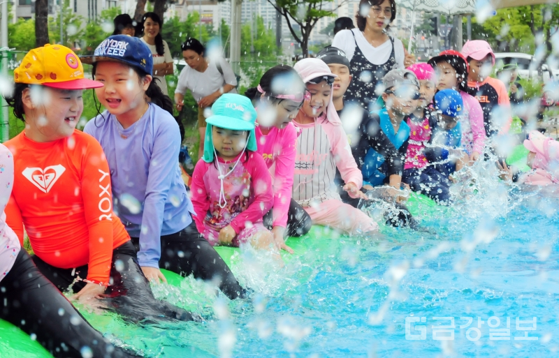 무더운 날씨가 이어지고 있는 가운데 27일 대전 유성구 원신흥동 작은내수변공원에 마련된 물놀이장에서 어린이들이 물장구를 치며 더위를 식히고 있다. 유성구 어린이물놀이장은 26일~8월11일까지 15일간 대덕사이언스운동장 등 6개소에서운영된다. 전우용 기자 yongdsc@ggilbo.com