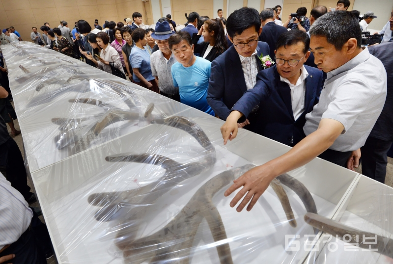 제27회 우수사슴 선발대회가 26일 세종시 정부세종컨벤션센터에서 열린 가운데 참석자들이 출품된 사슴 녹용들을 살펴보고 있다. 전우용 기자 yongdsc@ggilbo.com 제27회 우수사슴 선발대회가 26일 세종시 정부세종컨벤션센터에서 열린 가운데 참석자들이 출품된 사슴 녹용들을 살펴보고 있다. 전우용 기자 yongdsc@ggilbo.com 제27회 우수사슴 선발대회가 26일 세종시 정부세종컨벤션센터에서 열린 가운데 참석자들이 출품된 사슴 녹용들을 살펴보고 있다. 전우용 기자 yongdsc@ggilbo.com