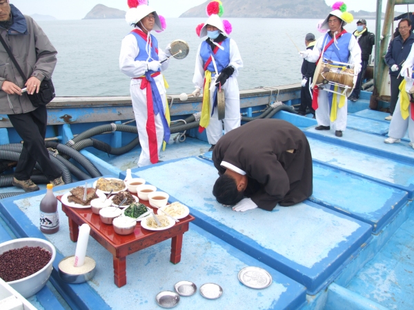 풍어제는 당제를 지내고 내려와 오색기가 펄럭이는 선착장에서 진행된다. 제를 올리고 나서 풍어와 어선의 안전을 기원하며 소의 피에 제물을 섞어 바다에 뿌린다. 가장 귀한 제물인 소의 피로 소원성취를 비는 것이다.