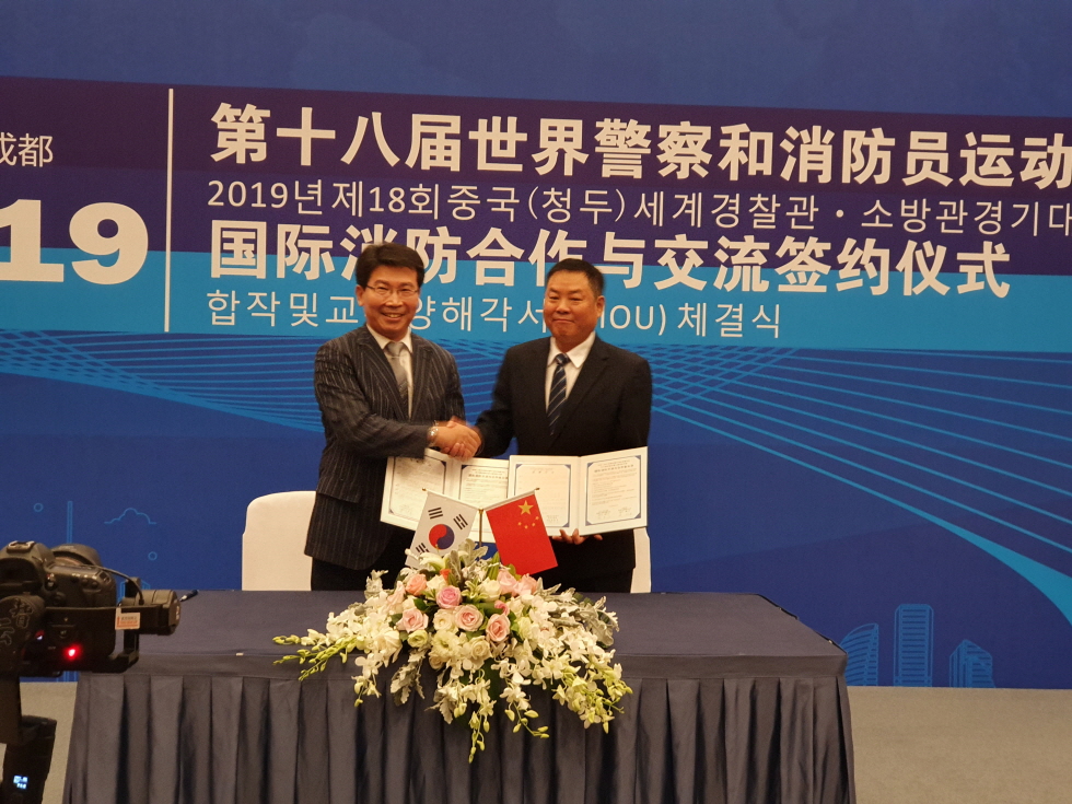 협약 체결은 지난 8일부터 오는 18일까지 중국 청두시에서 열리는 제18회 2019 세계경찰소방관경기대회에 선수단을 파견한 충북소방본부와 작년 9월 충북 충주시 일원에서 개최된 제13회 2018 세계소방관경기대회에도 선수단을 파견한 청두소방국 과 향후 국제교류을 지속, 협력 증대 방안을 모색하기 위해서다.